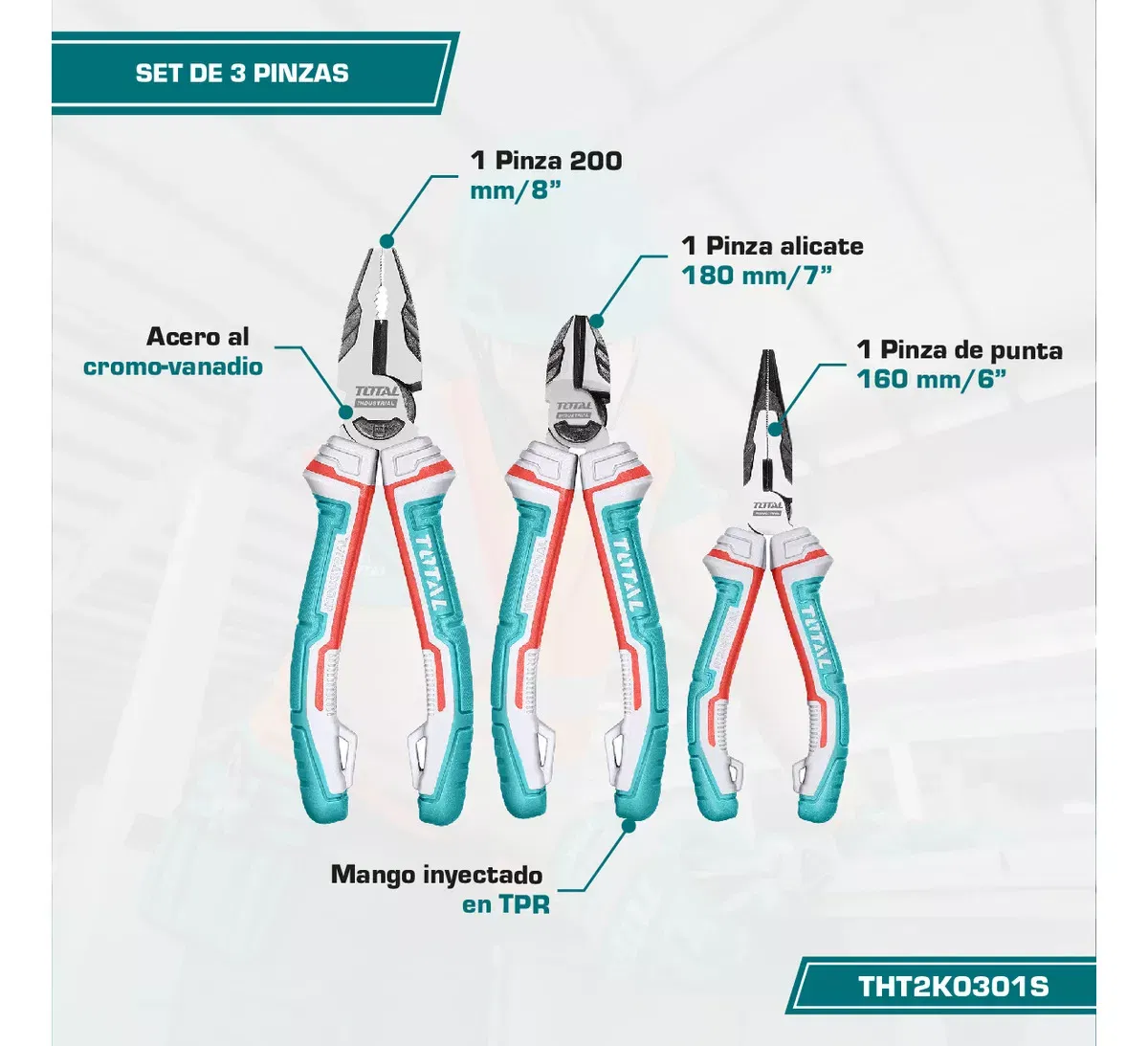 Kit de tres pinzas INDUSTRIAL TOTAL THT2K0301S