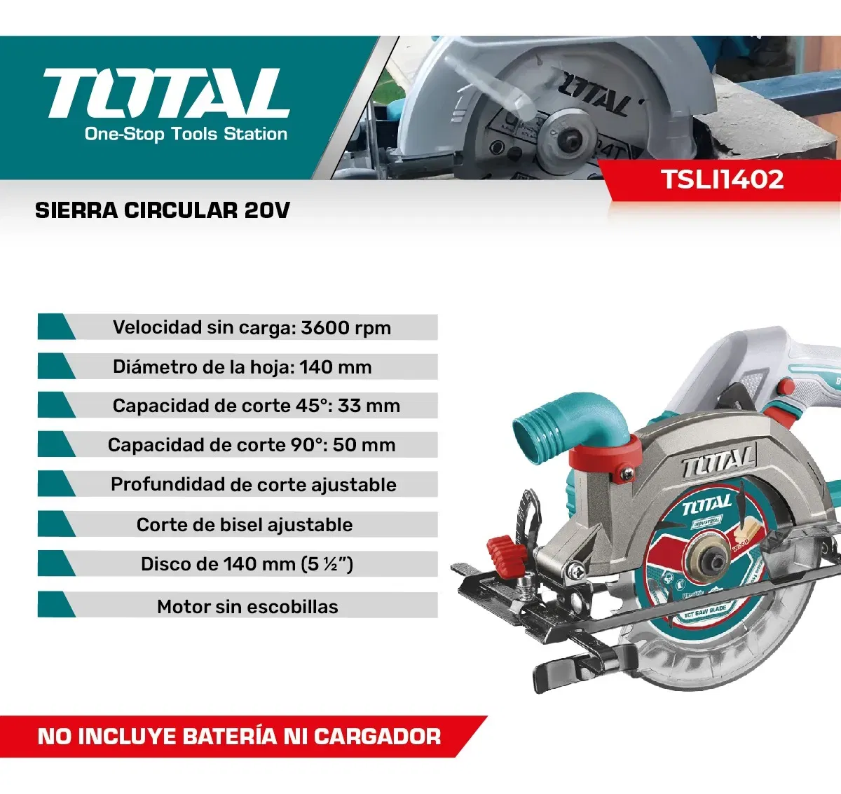 • Diámetro de la hoja: 140 mm
